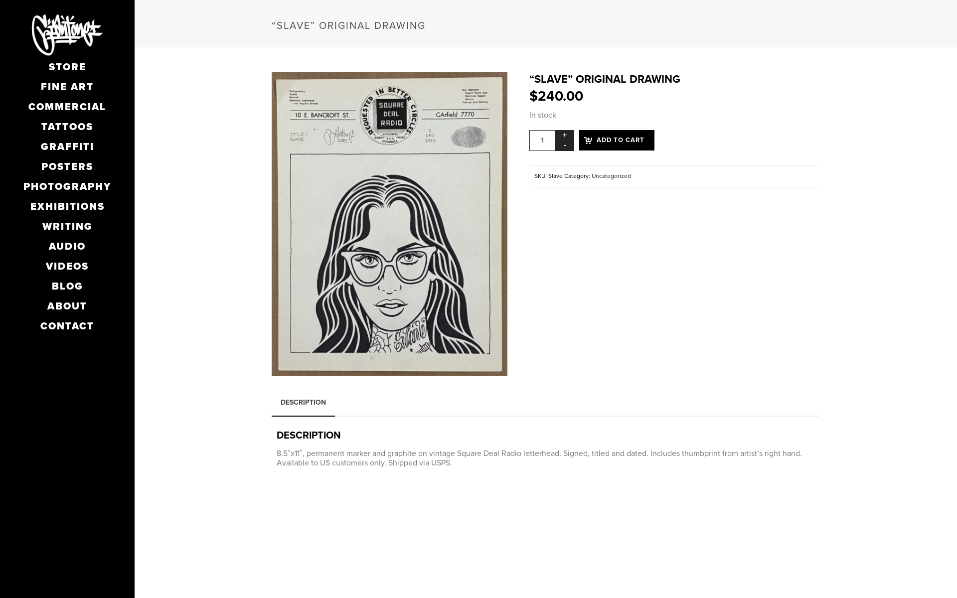 This is a drop! 8.5"x11", permanent marker and graphite on vintage Square Deal Radio letterhead. Signed, titled and dated. Includes thumbprint from artist's right hand. Available to US customers only. Shipped via USPS. Year: 2025 medium: print 240 USD in-stock